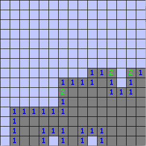 Obviously in the real game, you wouldn’t draw mines on tiles that haven’t been revealed, since that would defeat the whole game! This image is just for demonstration purposes only. In these images, “hidden” cells are drawn light-blue, and “revealed” cells are drawn in gray.